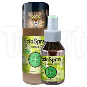 ECTO SRAY viene en dos presentaciones: 50 ml (gatos) y 180 ml (caninos de cualquier peso). Es fácil de aplicar y de dosificar.