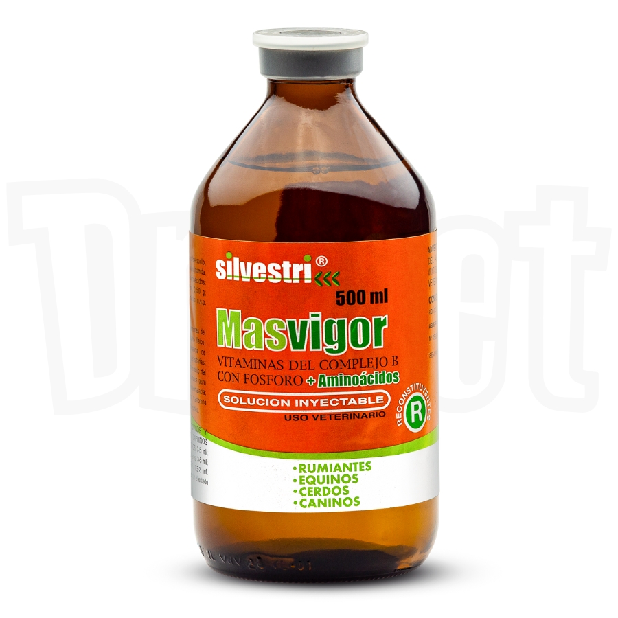 MASVIGOR es uno de los complejos vitamínicos más potentes del mercado venezolano. Su alta concentración de vitaminas lo hacen muy efectivo como fortificante y revitalizador en animales desnutridos, débiles y agotados. Es ideal para estimular el apetito, fortalecer el crecimiento y engorde de rumiantes, equinos, cerdos y caninos.